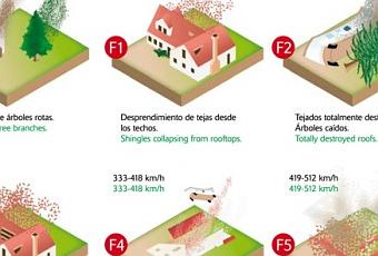 Muy interesante el último punto en el que se nos presenta un paisaje con elementos naturales y artificiales (coche, casa…) y podemos simular diferentes potencias de tornados para ver que daños ocasionaría basándonos en la escala de Fujita-Pearson.