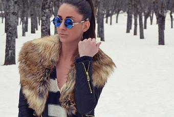 Con el clima que hacía, nevando casi todo el rato como podéis ver en mi pelo, era difícil hacer fotos con gran calidad, pero en un pequeño respiro del tiempo, pudimos hacer las que os enseño a continuación. Para ir a cenar una de las noches, elegí el outfit que os muestro: mi nueva biker con pelo sintético perfecta para este tipo de situaciones, jersey de rayas, leggings y botas de apreski.