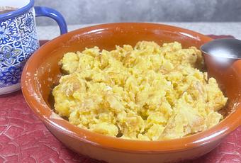 - Se vierte el pan con el huevo en el cazo para que se vaya dorando sin dejar de remover.