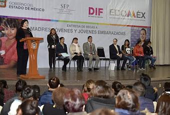 Toluca, Edomex.- Ser madre a los 17 años de edad fue un acontecimiento que cambió la vida de Josseline Michelle y de su pareja, pero gracias a la beca que ella, al igual que 131 madres jóvenes y jóvenes embarazadas recibieron por parte del DIF mexiquense, a través de la Secretaría de Educación del Estado de México, podrá realizar una de sus primeras metas que es concluir sus estudios de educación básica.Al encabezar la entrega de los apoyos económicos, María de Lourdes Nava Nájera, Directora de Prevención y Bienestar Familiar del DIF mexiquense, explicó que por medio del programa Becas de Apoyo a la Educación Básica de Madres Jóvenes y Jóvenes Embarazadas, las adolescentes de entre 12 y 18 años 11 meses de edad, de escasos recursos económicos y en estas condiciones, reciben un apoyo mensual de 850 pesos durante 10 meses para que se reincorporen, permanezcan o concluyan la educación básica de primaria y secundaria.“El Gobernador Alfredo Del Mazo y su esposa Fernanda Castillo de Del Mazo, como padres de familia, entienden su situación y las apoyan para que no trunquen sus estudios y que sus hijos sean el motivo más grande para que se superen, que sean mujeres que hagan familias fuertes, de bien y fomenten los valores en sus hogares”, expresó la funcionaria.Asimismo, detalló que ésta es la segunda etapa de entrega de becas durante la actual administración estatal con la que se beneficia a 132 jóvenes de 28 municipios, que se suman a las 153 beneficiaras del primer periodo correspondiente a 31 localidades.“Celebro con mucho gusto la entrega de estos apoyos y las felicito con el corazón en las manos por tener deseos de superarse, y el DIFEM las va a apoyar para tener familias mexiquenses felices y fuertes”, enfatizó Nava Nájera.En tanto, Hugo Andrés Hernández Vargas, Director General de Educación Básica de la Secretaría de Educación estatal, dijo que el apoyo del Gobernador Alfredo Del Mazo será permanente para los jóvenes en vulnerabilidad y quienes hoy tienen la responsabilidad de ser madres, cuentan con su respaldo para que estudien, sean profesionistas y obtengan un trabajo bien remunerado.