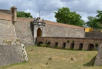 Porta de Olivença:Era la principal entrada de la plaza fuerte. De ella salía el camino que la comunicaba con la vecina Olivenza y el enclave fortificado de Juromenha, en la margen derecha del Río Guadiana. Desde sus inmediaciones, una potente caponera la comunicaba con el fuerte de Santa Lucía. Además un túnel, excavado en la roca, permitía el transito de municiones y personal entre ambos enclaves. La puerta como tal, estaba defendida por un potente revellín perfectamente artillado al que se accedía por uno de sus costados y un puente que podia ser elevado. El espacio intermedio entre el revellín y la cortina trancurre en recodo, siendo el foso y el puente perfectamente batidos desde ambos flancos por la artillería. La puerta de acceso a la ciudad se abre en la cortina, formando ambas un bello conjunto de trazas renacentistas, profusamente adornado con las armas y escudos de Portugal. Fue levantada en el siglo XVII, concretamente en el año 1685, durante el reinado del monarca D. Pedro II, según consta en las magníficas incripciones que figuran en sus frentes.