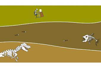 Cuidado con las horas que pasas frente al ordenador porque los procesos geológicos no perdonan y puedes acabar siendo una capa más de una columna estratigráfica. Al menos, eso parece desprenderse de este diseño de camiseta de HomeStead para Threadless. Puedes conseguirla por algo más de veinte dólares aquí.