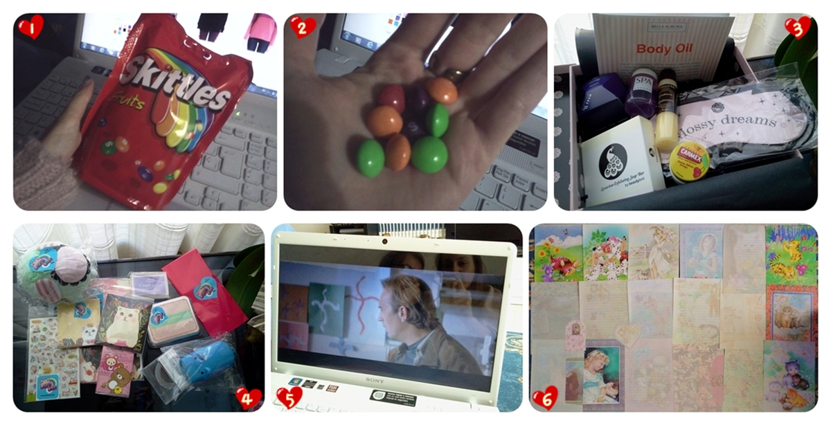 1. Los primeros buñuelos que hago en mi vida :D quedaron muy ricos!!! Los preparé para regalar a mi chico el día de las vírgenes (como hacíamos en el cole de peques que las niñas traían buñuelos y los nenes claveles xD), los hice rellenos de crema (se me hace la boca agua nada más por verlos xD). Os pondré recetita más adelante^^2. ¡¡Pedido de pigmentos!! No me quedé corta no xDD. Haré entradita contando mi experiencia de compra y también enseñando swatches, looks, etc3. Prensando los pigmentos que también os enseñaré entradita con lo que he usado e irá acompañada de vídeo!!!4. Los primeros buñuelos de viento que como este año jeje me los trajo la mami :), pero allí ya solo quedaban 3.. había muchos más!5. Fichada en el Müller la nueva edición limitada de Catrice! Son 3 paletitas super cucas con un esmalte por paleta (pero se venden por separado)6. El postre que me pedí cuando fui a comer con mi papi^^, es la tarta tatín (pastel de manzana asada) que la sirven calentita con una bola de helado (nunca he hecho pero quiero probar de cocinarla :D)1. Chupa chups de mousse de chocolate o mazapán cubiertos de chocolate con decoraciones comestibles, venían en un postre del Foster's (me los trajo la mami que el Xoxo -su pareja vamos- no los quería).2. Look uñil cuquísimo, es una pena que no se distinga bien (cuando suba looks de uñas este lo mostraré pero con fotos de la cámara digital)3. Regalitos que me trajeron los papis de mi chico de Suiza :D: un llavero y bombones suizos (que eran igualitos que los lindt...sí sí, como bien leéis ERAN jajajaja ya han pasado a mejor vida :P)4 y 5. Mi chico y yo con un bote enorme de ladrillos de pica pica jajaja, los compró mi chico en el Müller :)6. Dos entradas gratis para el cine :D, las he conseguido con una web de encuestas pero que son de valorar hipermercados, estaciones de servicio y algunos sitios de comida rápida. Hay que hacerle una foto al tíquet de compra y te hacen 10 preguntas que tienes que valorar numéricamente (del 1 al 10). Es super fácil de hacer, yo tengo la aplicación en el mvl porque me resulta más fácil para enviar la foto. Te dan puntos y luego los canjeas por premios^^, pero casi todo son regalos físicos (nada de paypal o tiquet compliments T_T). De todas maneras si alguien está interesada le puedo enviar una invitación (creo que sólo se puede acceder de esta manera) o hacer una entrada explicando más detalladamente todo.1. Las arañas mutantes que hice para Halloween^^, a todos los nenes que vinieron a pedir chuches les di una :D! Varios vecinitos me han venido a decir que les había encantado y que hiciera de nuevo para el próximo año xDD. También os enseñaré la recetita.2. Ejército de arañas jajaja, todavía hice más de las que se ven!3. Pedido que hice con la mami de cositas de papelería :D, son reyes adelantados jijiji. Me encantan estas chuminadas^^. También os las enseñaré por el blog4. Mcdonald's con la mami :), solemos salir a comer una vez cada dos meses a comer comida basura^^, la pena es que no había Sundae de dulce de leche :(5. Nuevos esmaltes en Mercadona, hay algunos tonos monísimos!!6. Regalitos que me dieron por jugar a la ruleta del Última Hora, en el diario dan unos cupones que si los llevas puedes participar^^, mi chico también se llevó lo mismo :)1. y 2. Primer Media Markt en Mallorca :D, estaba llenísimo de gente y es verdad que algunas ofertas son buenísimas.3. Muñeco navideño que canta y baila jajaja, encima super marchoso!4. Paletita de Catrice que me compró mi chico el finde siguiente de haber visto las paletas jejeje, tiene 2 colores en especial que me encantan. También os la tengo que enseñar y hacer looks^^5. Compritas de la edición limitada de Twilight de Essence, es un pigmento moradito con base negra y un eyeliner transparente con purpurina también morada. Os los enseñaré :)6. Mis "cereales" preferidos! en verdad es muesli jajaja, yo me los tomo con la leche y a veces también sin nada, me tienen super viciada, me paso el día picando u.u', lleva trozos grandecitos de frutos secos riquísimos (nueces, avellanas y almendra). RECOMENDADISIMOS! Están de muerte :D, los venden en Mercadona y, si no recuerdo mal, cuestan 1,75€1. y 2. Nuevo descubrimiento en Müller, son unos caramelitos que se llaman Skittles, al principio nos pensamos que estaban rellenos de chocolate (como los lacasitos) pero no, cuando los masticas son como sugus y con sabores de frutas :D3. Cajita de Glossybox, hay cositas que me han encantado, también la enseñaré^^4. Recibido el pedido que hice con la mami!!!5. Película que me encantó y os recomiendo que veáis^^, se llama "Dragonfly" o "La sombra de la libélula". Es la típica película que te deja en vilo hasta que acaba jajaja, te pasas toda la peli pendiente de lo que pasará y el final no es tan predecible. Si queréis ver la sipnosis os dejo el enlace al de la wikipedia. Y si alguien está interesada en verla online que me avise (mejor por email) para que le pase un enlace.6. Estuve ordenando carpetas que tenía ya olvidadas y me encontré con mis cartas perfumadas de cuando era peque^^ que ilusión me hizo, estas son algunas de las que tengo jijiji ¿vosotras también teníais?Y por último fotitos con Pelusín! Mirad lo enorme que está :| ... ni que le diera petit suise para comer xDDSi os fijáis en la foto 2 está enorme :), si queréis ver fotos de cuando me lo compró en nene podréis verlo en esta entrada (principios de Septiembre) y en esta otra fue la segunda vez que os lo enseñaba (son de finales de Septiembre), la tercera vez en esta otra entrada (hace menos de un mes) y ahora está así de grandote jajaja. Es super mimosón pero también me gruñe si tiene un mal día xDD, y me viene a dar golpecitos con la cabeza en mis pies para que lo acaricie y le haga mimitos jajaja ¡está mimadísimo! (basta verle la cara en la primera foto jajaja)Seguramente durante el finde no podr