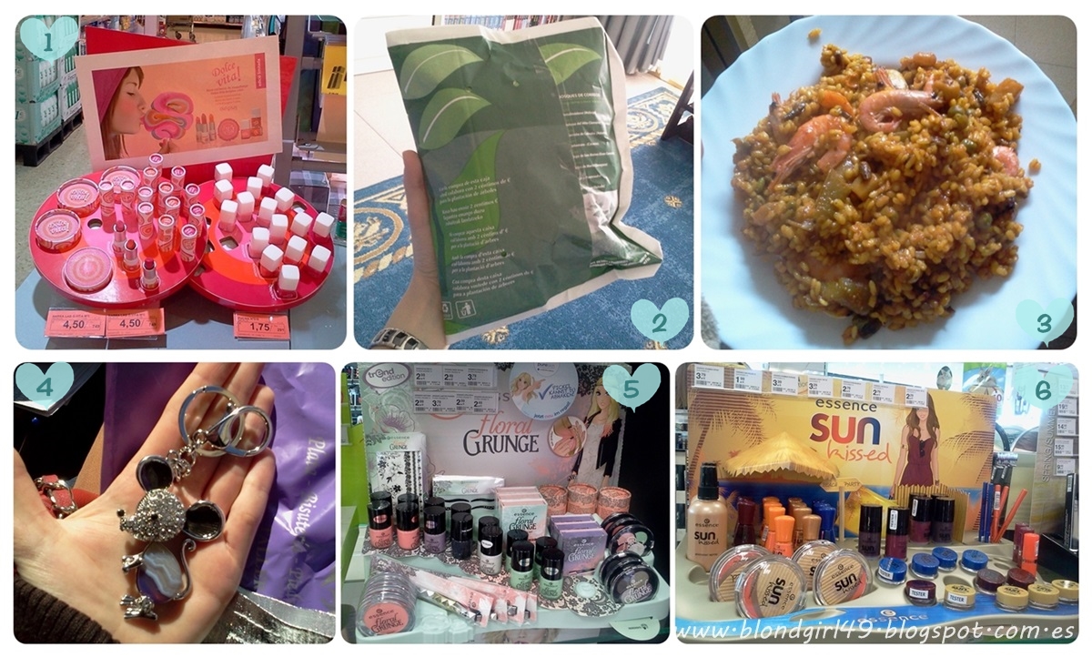 Hola amorcines ¡ya estamos a viernes! ¿también teníais ganas? me imagino que la gran mayoría sí :) aunque menudo fastidio que tenga que hacer tan mal tiempo :(, pero bueno, como ya os dije a hacer vida dentro de casa o en centros comerciales xD. Yo hoy tengo que cocinar profiteroles porque mañana por fin viene la hermana, sobrina y cuñado de mi chico :D, así les doy la bienvenida con algo dulce :P (si os interesa os dejé la receta en esta entrada) y también me toca irme a comer con mi padre que el miércoles pasado me fue imposible :/ y ya va siendo hora que nos contemos la vida xDDD 1. La colección Dolce vita! de Mercadona, me enamoró nada mas verla(L). Colorete a 5€, 3 labiales a 4,50€ cada uno y 3 esmaltes a 1,75€ la unidad. Yo en ese momento no me llevé nada pero luego mi madre a la semana me dio una sorpresita :)2. Intercambio con Izaskun^^, dentro de poco os lo enseñaré en una entrada!3. Paellita(L), me encanta prepararla pero estaría más rica con langostinos xDDD4. Llaverito que me regaló mi padre días antes de mi cumple, en esta entrada ya os enseñé mis regalitos^^5. Ed. limitada Floral Grunge de Essence, por lo visto no ha tenido demasiado éxito, casi siempre que voy a Müller lo tienen todo lleno u.u'6. Ed. limitada sun kissed de Essence, esta ya sí se está vendiendo un poquito más :) 1. Compritas^^, cápsulas para cupcakes que creo que me costaron 2,50€ y bolitas para hacer manicura de caviar que creo que no costaron más de 2€2. Las envases con las bolitas3. Cupcakes con fresas y frosting de chocolate, pronto os enseñaré la receta :)4. y 5. Intentando hacer florecitas, anda que no cuesta!!!6. Neceser de Hello Kitty que le compré a la sobrinita de mi chico, por fin este finde podré darle todos los regalos :D 1. Cena en casa de unos amigos de mi chico, nos cuidan bien ehh :P2. Cerdito enano domesticado :O3. Regalito de cumpleaños(L), mi chico me pagó la mitad, en esta entrada os la enseñé un poquito mejor^^4. Regalitos que me hizo la mami jijiji, os los enseñaré en las compras de Mayo5. Mi cámara(L) me encantaaaa!!6. Porquerías del sábado noche :P, la gran mayoría son de Lidl jeje a parte de que está todo muy bueno los precios son estupendos :) 1. 2. y 3. Fotitos del desfile de moda, en esta entrada os enseñé más fotos4. Chucheeees, me los dio mi amiga por ayudarla con el desfile jajaja 5. Tomando algo por ahí :)6. Cena en casa de mi chico, a ponernos morados de pepito jijiji 1. 2. y 3. Comida con mi padre, siempre me lleva a comer de menú aún así mirad que presentación más chula. De primero tortilla de patata con cebolla caramelizada y abajo lleva salsa de tomate, de segundo calamares que llevan patata debajo y de postre tarta que lleva nata y dulce de leche (es raro pero no me gustó demasiado, a la nata le faltaba azúcar y la base de galleta era demasiado gruesa xD)4. Mirando un libro de recetas en forma de pizza jajaja además venían muchas ideas de ingredientes para ponerles a las pizzas =)5. Compritas en Sephora que me salieron gratis con tickets compliments^^6. La nueva colección de esmaltes de Catrice 1. Sombritas y esmaltes nuevos de Manhattan :)2. Tabletas de chocolate de sabores muy curiosos, uno con caramelo, otro de tarta de queso con fresas, otro de cookies...3. Pedazo de stand de Artdeco en Müller jajaja, tentadooor4. Pedido de bisutería baratita por internet, pronto en el blog^^5. Brochitas de imitación a las Real Techniques, pronto en el blog jiji, pensad que hay una incluida en el sorteo que realizo6. Ensaimada rellena de crema(L), me encantaaaa! 1. Yo en la comida familiar que tuvimos en el molino de mis abuelos, pronto os enseñaré las fotitos^^2. Robiols que preparé para la comida familiar, ya os enseñé qué son y cómo se hacen en esta entrada (es un dulce típico de Mallorca y se prepara en Pascua)3. Rebajas del 50% en el chocolate de Pascua!!! Tanto de la marca Lindt como de Milka jijiji4. Arrasamos un poco :$5. A probar el rodillo de Milka, vienen 5 bombones^^ (también compré uno para el sorteo del blog)6. Tarta de cumpleaños que le preparamos a la mami de mi chico, más adelante os subiré la receta en el blog, si os interesa otra tarta de cumple tengo publicada la tarta San Marcos aquí.¿Qué planes tenéis para el finde?¡Feliz viernes y fin de semana cielines! Un besote enorme :D