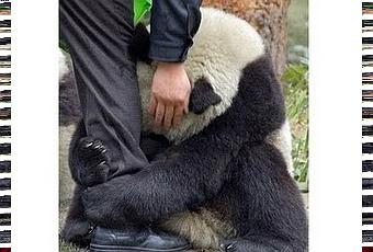Abrazado a la pierna de un policía, fue captado un oso panda de un zoológico de Japón, país azotado por un terremoto de 8.9 grados.