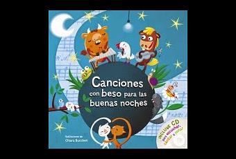 Se trata de Canciones con besos para las buenas noches, un libro con ilustraciones de Chiara Buccheri y lleno de música. En cada una de sus páginas podréis encontrar canciones populares de nuestra historia, esas canciones que pasaron de padres a hijos durante mucho tiempo. ¿Que a qué canciones me estoy refiriendo? Pues a esas canciones que cantábamos en el colegio, con nuestra familia... Cu-cú cantaba la rana, Don Gato, El patio de mi casa, Tengo una muñeca vestida de azul... ¿las conocéis? Yo tengo grandes recuerdos de esas canciones, me podía tirar todo el día cantándolas. Pues como os decía, en este libro podréis leer la letra de cada canción y cantarlas con los más peques con la ayuda del CD que incluye. Así que ya sabéis, a ponerse de pie encima de la cama y a cantar con vuestros hijos, primos, nietos, sobrinos, hermanos... Por un día contagiaros de su niñez y disfrutar sin importaros nada más. Eso sí, cada vez que termine una canción, un beso bien fuerte de buenas noches.