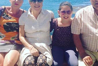 Allí nos hemos tomado un cafelito y un licor, y la idea era ir a dar una vuelta, mi padre en principio decía que sí, pero cuando nos hemos puesto a andar, ufff, y estabamos lejos de casa, asi que como he podido se ha ayudado de mi marido y para casa, y al llegar se ha tumbado... y bueno a esperar que se le pase...