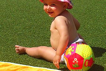 La foto elegida ha sido de la piscina, porque sale (que voy a decir yo, su madre) preciosa, me la comería cada vez que la veo. Se vuelve loca de contenta cuando hay más niños, huía de mi y de mi toalla para irse a recorrer mundo. La piscina de niños le encantó, hasta ahora la metemos en grandes en brazos. Hasta se animaba a soltarse y mantenerse sola, a ver si se anima del todo y va pensando en echar a andar!!