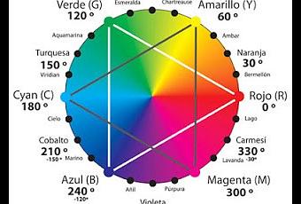- Si después de hacer saturación = -100% se clickea sobre “colorear”, se pueden hacer virados muy facilmente, jugando con la saturación y el tono. Para el tono, el deslizador va de 0 a 360º según este espectro: