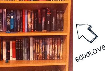 Lo que más me gusta de la estantería de Saralovebooks es la esquina de los marginados, como ella misma lo llama. ¿De qué se trata? Pues de aquellos primeros libros que pertenecen a una saga y que en este momento se encuentran solos porque aún no tiene la continuación o porque ni siquiera se ha publicado todavía. Con los demás libros los ordena por sagas (requisito: haber más de uno) y por autor.