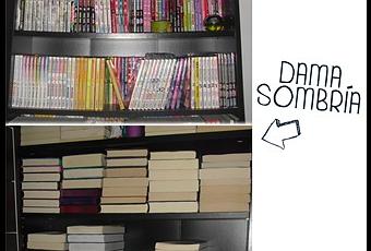 Como es el caso de Dama Sombría que encontró la solución apilando los libros en horizontal y de lado, como podéis ver en la imagen. Así están bien ordenados aunque no se vean los lomos, pero ella se acuerda de cuál es cuál. También la estantería cuenta con un fondo generoso y puede poner unos delante de otros formando dos filas.