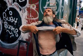 Justin Vogel comenzó a hacer fotos cuando estaba en la escuela secundaria a mediados de los 80. Realmente no sabía que existía la fotografía callejera en ese momento, pero disparar en la calle era algo instintivo. Era un niño de los suburbios de Nueva York y sobre todo disparó por la parte baja del este de Manhattan a vagabundos y gente de la calle. Estudió algo de fotografía en la universidad, pero finalmente ganaron otros intereses y la dejó.