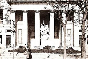 El Museo del Prado a finales del Siglo XIX ya era una institución de prestigio y bien valorada. Muy lejos quedaba ya su discreta inauguración de 1819 cuando abrió como "Museo Real de Pinturas" gracias al esfuerzo y tesón de Isabel de Braganza, la segunda esposa de Fernando VII. Aún así, más distancia mental quedaba todavía para las colas de gente y la proyección internacional que hoy esta pinacoteca ha alcanzado y que seguramente, si hubiésemos aventurado a los parroquianos que aparecen en la fotografía, nos hubiesen tomado por locos.