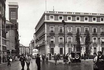 Quizás, observando su pasado gracias a imágenes como la que os comparto hoy, uno pueda entender su aparente descontento. Nos encontramos en los años cuarenta y como podéis observar, el ambiente de aquella Plaza de Jacinto Benavente era bien distinto. Elegante, serio, de buen porte. Ya entonces estaba concebida como un lugar de paso y no como un punto para la contemplación de la vida. Aún así, se permitía ciertas licencias y es quizás, de la añoranza de esos tiempos, el motivo de su pena.