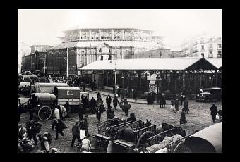 Siempre que he paseado por La Latina y he caminado a su vera he tenido la sensación de que el Mercado de la Cebada desprende un aire apesadumbrado que nada tiene que ver con el resto de la zona. No sé cual es el motivo pero siempre luce melancólico y triste, como un enamorado al que le acaban de dar plantón en su cita más soñada. Creo que la magia de esta foto reside en el hecho de que ya en 1920, fecha de la misma, a pesar de la incesante actividad que lo invadía y de su aspecto anterior, su alma ya parecía caminar cabizbaja.