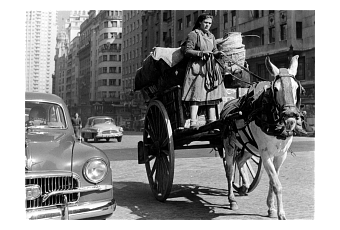 En la foto vemos a una trapera de Tetuán atravesando con su carruaje la elegante y majestuosa Gran Via. Los traperos solían ir por las calles cambiando ropas viejas por todo tipo de cacharros de hojalata y la mayoría de ellos se ubicaban en Tetúan de la Victoria, cuando éste era el extrarradio de Madrid. Lo que más me llama la atención de la fotografía es la mirada de indiferencia de la chica, más centrada en llevar bien cogidas las riendas de su carro y que este no provoque ningún accidente con alguno de los coches que transitan a su lado, que por mirar al fotógrafo que la está retratando.