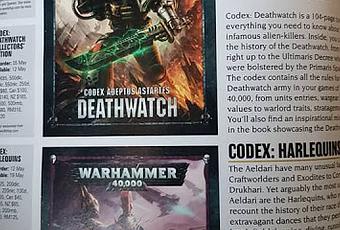 Algo breve, pero interesante. Desde este link se han filtrado las imágenes completas de los precios de los lanzamiento de Mayo, al menos la primera mitad de Mayo, para W40K. El codex Deathwatch saldrá por 32,50 euros y tendrá versión recortada en español, supongo que a 25 euros. La edición de coleccionista son 65 euros y 12 euros las Datacards. Todo como siempre, vamos.