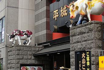 Paseando por Asakusa en busca de un lugar para comer encontré este restaurante de Yakiniku custodiado por varios toros.