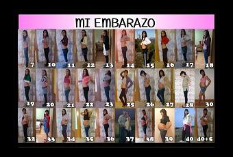 Desde que me el test dio positivo me propuse hacerme fotos embarazada todas las semanas. Alguna semana se me pasó, otras las hice fuera del marco habitual… pero lo conseguí! He conseguido completar una foto póster para el recuerdo. Y sobre todo… he conseguido terminarla con la beba por aquí!