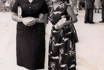 La fotografía fue tomada un día primaveral del año 1955 en la Puerta del Sol. Es la joven bajita con precioso vestido de motivos florales y una sonrisa bien amplia. Confiesa que la sonrisa tapaba su expresión de dolor por el daño que le hacían los zapatos. Cosas de la coquetería juvenil.