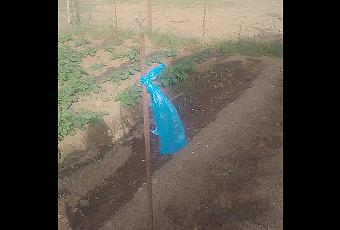 Cinta colocada en un hierro a modo de espantapajaros que hace la funcion de que estos animales no sigan cortando a los vegetales que tenemos plantados.