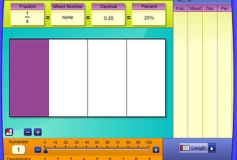 Fraction Models. Fracciones interactivas. En inglés, pero intuitivoExplorar diferentes representaciones de fracciones incluyendo fracciones impropias, números mixtos, decimales y porcentajes.