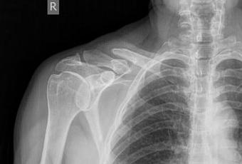 Clavícula, con pérdida de la contigüidad a nivel de unión de tercio distal y medio, con desplazamiento caudal de tercio distal y craneal del medio, de bordes escleróticos y obtusos, con disminución del espacio coracoclavicular. Resto de estructuras óseas, sin evidencia de fracturas y con fusión adecuada.