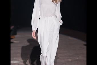Una colección que utilizada el blanco como color principal tanto  solo como combinado con el negro. También tiene presencia el cuero  y los pelos en las chaquetas y abrigos. Increíble el abrigo beige del final.