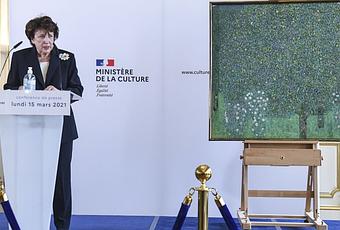 “Es en los últimos años que se ha establecido el verdadero origen de la pintura”, dijo, y agregó que era “la única pintura de Gustav Klimt propiedad de Francia”.