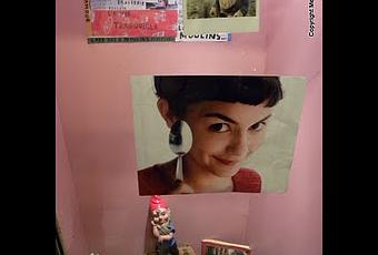 El café se encuentra en la subida hacia el Sacré Coeur y guarda toda la esencia "Amélie" con objetos que aparecen en la película...como el enanito que viajaba por todo el mundo y le mandaba fotos al padre de Amélie.