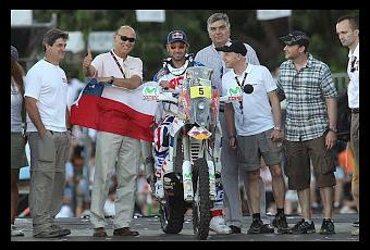 En el lanzamiento protocolar del Rally Dakar 2014, el piloto chileno recibió el cariño de la gente en Rosario, Argentina, kilómetro cero del certamen.