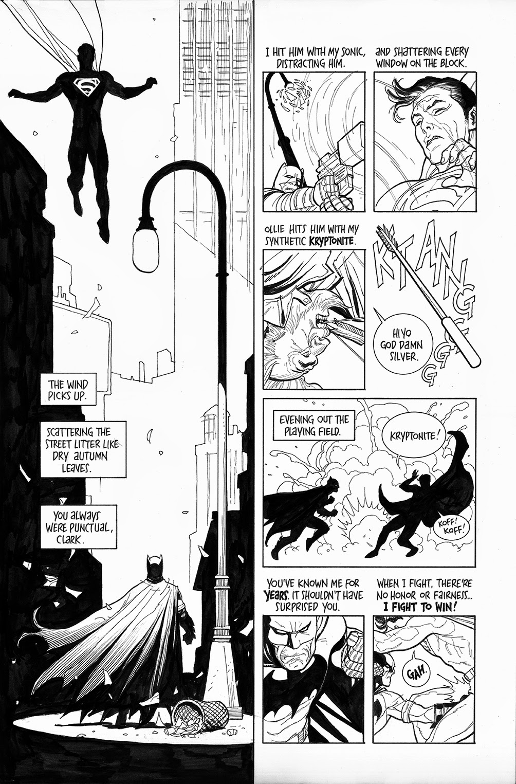 A Frank Cho no le gusta nadita Superman, le parece "aburrido y estúpidamente simple, así que aprovechó una comisión donde le pedían dibujar a Batman y Superman y con la salvedad de que Cho podría hacer lo que quisiera, buenocon su antipatía a cuestas pensó que sería magnifica idea recrear parte de el comics de Frank Miller The Dark Knight Returns, donde un viejo y cansado Batman le da de golpes a Superman.