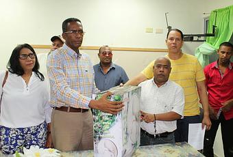 NEIBA. El prsidente de la Comisión Presidencial de Apoyo al Desarrollo Provincial,Francisco Del Valle Ramírez, (Frank), presidió a título personal un acto de entrega de 30 abanicos al hospital público San Bartolomé de Neiba, en respuesta a una petición del cuerpo de enfermeras del centro.