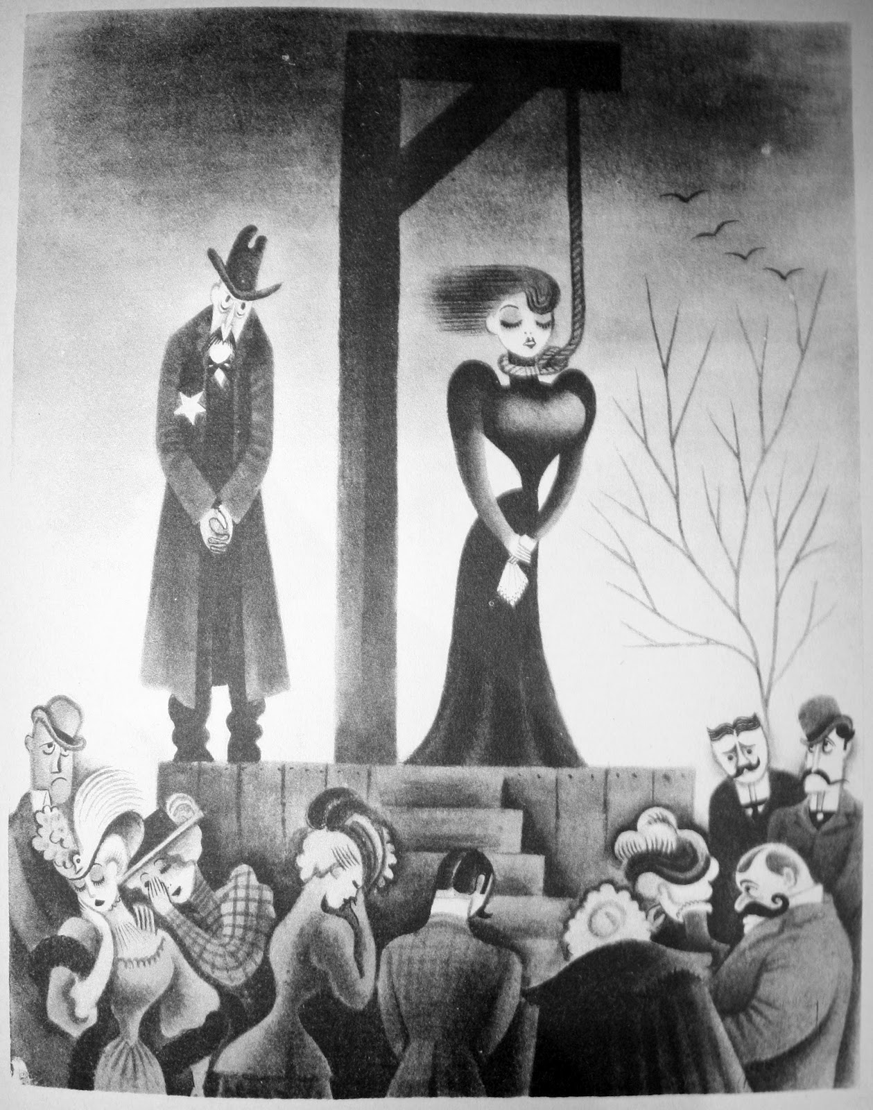 Pero sí queremos entender qué hizo a Huston interesarse por esta canción, tenemos que ir un poco más adelante en el tiempo. Si están observando los dibujos tan excelentes que Miguel Covarrubias hizo para el libro de Huston y que fueron clave de su éxito, verán que ni Frankie ni Allen son negros ni los escenarios pobres burdeles de St. Louis. Cuando los vi por primera vez, poco antes de buscar como una loca el libro del cual les hablo, pensé que Frankie me recordaba mucho a Mae West. Lo que no sabía es que era Mae West.