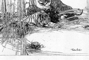 Franklin Booth (1874 – 1948) fue un artista norteamericano cuyas obras realizadas en tinta y lápiz posteriormente grabadas con un estilo que recuerda al de Gustavo Doré, aparecieron en numerosas revistas ilustradas, también ilustro libros y durante la I Guerra Mundial realizó carteles para la Cruz Roja.
