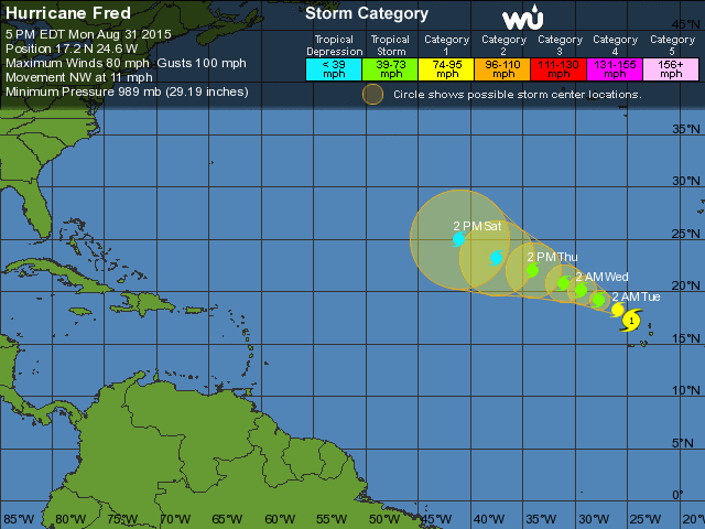 Lo más importante para destacar es que "Fred" lentamente irá perdiendo fuerza en los próximos días, con un movimiento del Noroeste, pero apartir del martes 1 de septiembre irá girando hacia el Oeste - Noroeste. Cabe mencionar también que el fenómeno natural seguirá afectando a las Islas de Cabo Verde como huracán en las próximas horas, hasta que lentamente se aleje de las islas en los días siguientes, sumado a un constante debilitamiento, según ha informado El Centro Nacional de Huracanes con sede en Miami.Nosotros desde este blog iremos actualizando la evolución de "Fred" minuto a minuto y les pedimos que se mantengan informados por cualquier novedad de último momento.