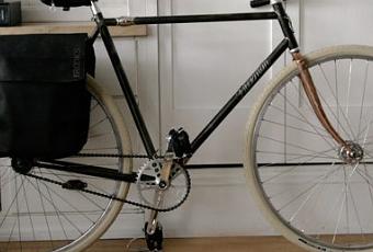 In his honor we’ve built a bicycle with a finish similar to that gun, richly painted with gun bluing and ferric browns, sealed with tree wax and ready to age. It comes with or without couplings, stainless steel lugged rack, chain guard and fenders, and can be built fixed or coaster braked and is perfect for commuting or general transport.
