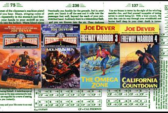 Pero volviendo al tema de los libro-juegos, aunque Lobo Solitario se llevo todos los laureles, no fue la única serie de libro-juegos que hizo. Entre 1988 y 1989, incursiono en el genero de la ciencia ficción post-apocalíptica con una serie de libro-juegos llamados Freeway Warrior. El titulo lo traduciríamos al español mas o menos como El Guerrero de la Autopista.