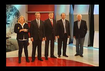 Elisa Carrió , Julio Cobos , Hermes Binner y Fernando "Pino" Solanas , los referentes del Frente Amplio-UNEN , que ayer se presentó oficialmente.