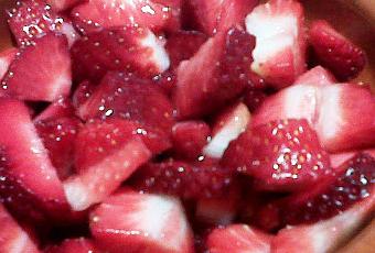 Una hora antes de comer las fresas, las lavamos y troceamos. Añadimos el azúcar y las cucharadas de vinagre, lo removemos bien. Y las reservamos hasta la hora de comer. Durante ese rato macerarán y luego tienen un sabor buenísimo.