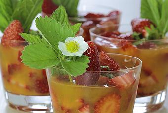 - Spread the orange juice in the glasses with the strawberry pieces.