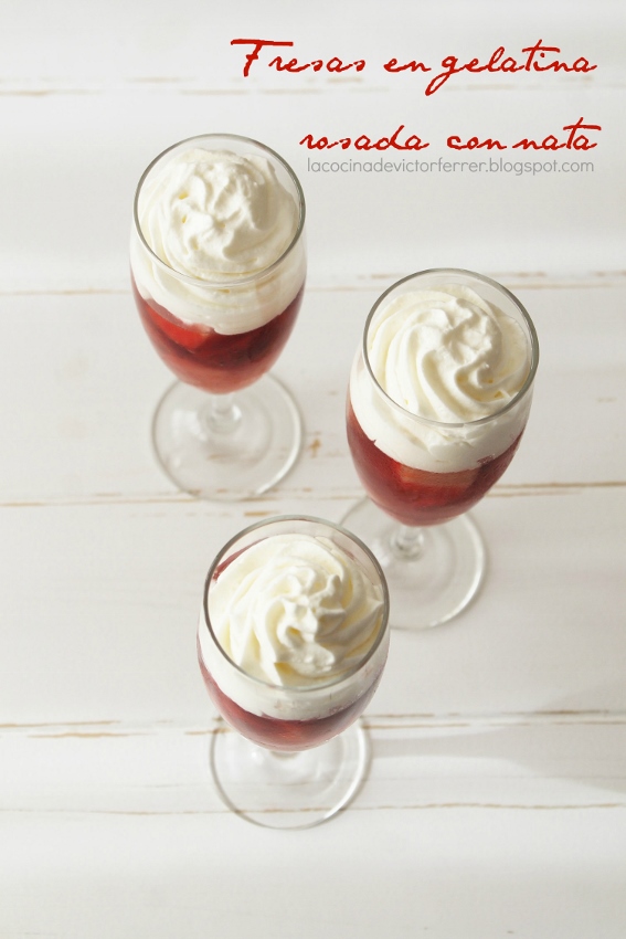Ahora que llega el veranito, dejemos a un lado la operación bikini para poder disfrutar este postre. Una nueva versión del clásico fresas con nata. La mezcla entre las fresas y la nata sabemos de sobra que combinan a la perfección, pues con el vino rosado aun mejor. A mi no me gusta nada el vino, pero nada de nada. Y aun así este postre me encantó. Ahora que he empezado a trabajar en el mundo de la hostelería, te das cuenta de que si realmente te gusta la cocina, eres capaz de trabajar en una.