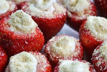 - Con un cuchillo remover el corazón de las fresas para dejar un hueco. Reservar.