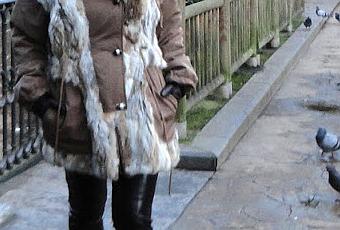 Jersey de ochos burdeos.....o mas bién teja?, leggins polipiel brillante, parka pelo y gorrito de lana, por cierto éste del cajón de mi nene.