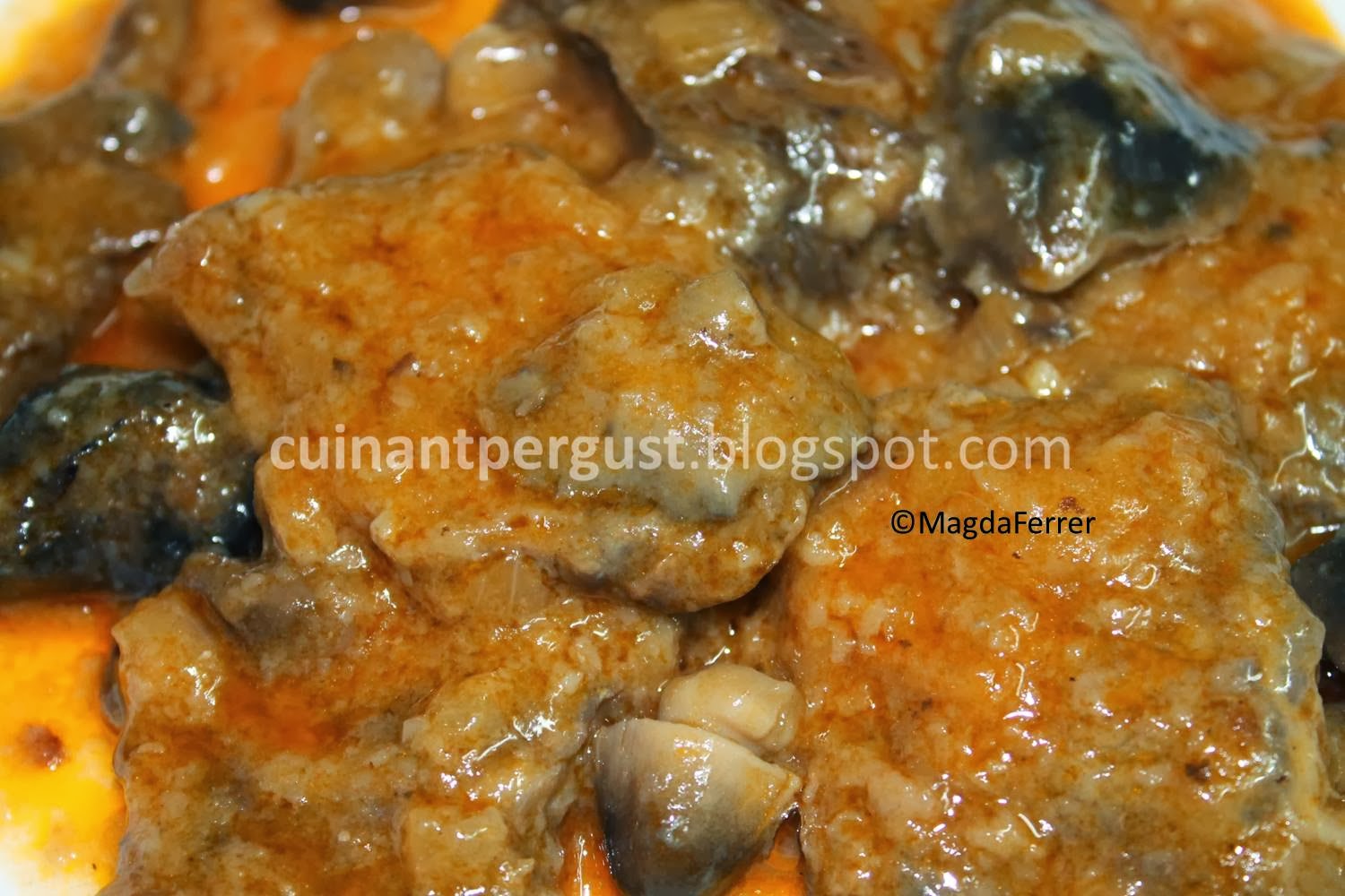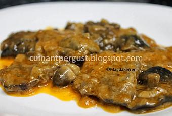 Bistecs de terneraCebolla picada100 ml. de tomate frito300 gr. de níscalos, moixernons (Calocybe gambosa) o variado de setas (admite cualquier variedad)Harina