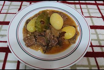 Hoy os traigo una receta que solía elaborar mi yaya y elabora mi madre. Es un plato que en casa nos encanta.INGREDIENTES: 600 gr de filete de ternera4 tomates maduros1 bote de patatas de las redondas ya cocidas1 cebolla grande2 dientes de ajo1hoja de laurel1 bote de setas variadas50 gr de moixernons50 gr de piñonesUn chorrito de vino blanco2 vasos de aguaHarina para rebozarAceite de oliva virgenSalELABORACIÓN:Pondremos las setas deshidratadas en remojo en agua durante unos 20 minutos, hasta que se hayan ablandado totalmente. Reservamos, enharinamos cada filete y en una cazuela grande de piedra que usaremos para el guiso calentamos un buen chorro de aceite de oliva.Y doraremos los filetes por ambas caras. No es necesario freírlos del todo, se trata de sellar bien la carne por los dos lados. Retiramos de la cazuela y reservamos.En la misma cazuela y con el mismo aceite sofreiremos la cebolla y el ajo y los cortamos en dados pequeño, pochamos bien la cebolla y el ajo. Cuando la cebolla esté lista añadimos el tomate rallado Cocinamos durante 15 minutos a temperatura media.Mientras vamos preparando el guiso tostaremos los piñones en una sartén sin aceite durante unos minutos y reservamos. Cuando el sofrito esté bien hecho incorporamos las setas y cocinaremos durante 5 minutos más. Añadiremos los filetes de ternera que tenemos reservados y el vino blanco.Dejamos que se evapore el alcohol durante 2 o 3 minutos. Añadiremos y los piñones tostados, Añadiremos el agua, sazonamos y dejamos que se cocine durante 30 minutos a fuego medio bajo hasta que la salsa se reduzca. Y por último añadiremos las patatas y dejamos cocer durante 5 minutos más.