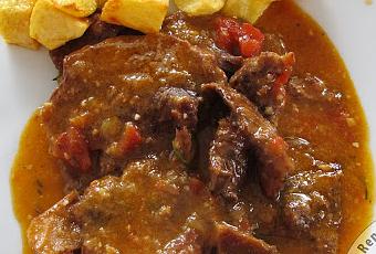 Servimos acompañada de unas patatas fritas en cuadrados. Buen provecho