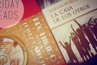 ¡Buenas! Rápidamente os voy a enseñar mis lecturas elegidas para este fin de semana. La primera es La casa de los otros [Mariam Petrosja], libro que estamos leyendo en el Reto 10x10. Hay que decir que no llevo demasiado, así que igual influye, pero lo cierto es que no me estoy enterando de ná. Vamos, por saber no sé ni de qué va el libro todavía. Iré dejando mis impresiones por Twitter con los hashtags #Reto10x10 y #CasaDeLosOtros, por si queréis ir cotilleando. El segundo libro es Prohibido leer a Lewis Carroll [Diego Arboleda], del que intentaré traer fotorreseña este mismo lunes. Edición monérrima donde las haya. Y vosotros, ¿qué tenéis pensado leer?