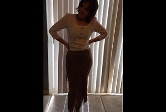 El segundo outfit es : pensé usar una blusa de manga larga que también se puede usar como 3 cuartos ,es de color cafe y tiene como diseños estrellas en color negro,estoy usando la blusa para afuera ,se ve mas casual ,pero también puedes usarlo si vas a una junta o reunión.