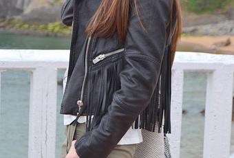 Hace una semana ya os enseñaba lo que será una de las prendas más vistas de esta primavera, una chaqueta de flecos de antelina y hoy os enseño la versión en cuero, y es que fue ver la colección de María Escoté para el otoño/invierno 2014/2015 y enamorarme de las cazadoras de cuero con flecos tan impresionantes que sacaba en su desfile. Así que, como no me puedo permitir una de María Escoté, me compré la cazadora de cuero con flecos de MANGO que os enseño en el look de hoy. En este primer look que me veréis con ella la combino de forma bastante sencilla pero con un resultado bastante chic, camiseta blanca y pantalón tobillero en verde caqui. Para los complementos opté por un collar y anillo de estilo boho y una mochila indie de PARFOIS que también se puede utilizar como bolso bombonera, si aún no tenéis mochila ir pensando en haceros con una porque van a ser uno de los complementos estrella de esta primavera/verano. Qué os parece el look? Cazadora: MANGOCamiseta; BERSHKABolso: PARFOIS